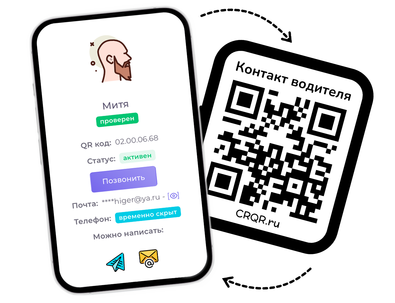 Автовизитка CarQR – это самый безопасный способ оставить контакты для связи с водителем автомобиля, не раскрывая при этом номер телефона каждому прохожему.
